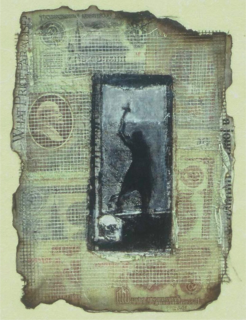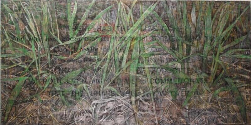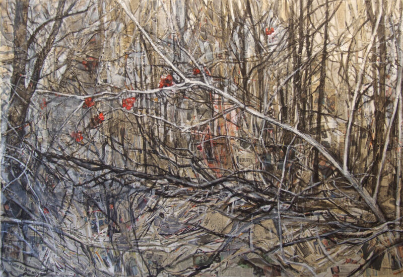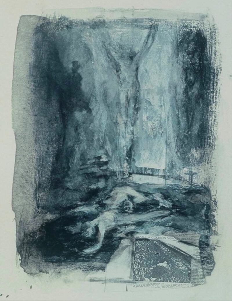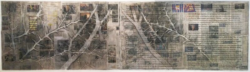 Lydia’s use of collage became a central theme in our conversation. She explained how she uses this medium to piece together fragments of text and imagery, creating visual narratives that communicate complex stories. Her process involves collecting print media clippings, cultural artifacts, and personal mementos, which she arranges on canvas or board. Through this method, Lydia aims to evoke a sense of dialogue, inviting viewers to engage with the layers of meaning within her work.