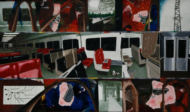 As we delved deeper, Terry explained how the confusion, fear, and disorientation he experienced during the shooting influenced the chaotic and fragmented nature of his artwork. He shared that the sounds and disjointed images from that traumatic day continue to haunt him, and this is reflected in how he constructs his art to convey the surreal and fragmented nature of such memories.